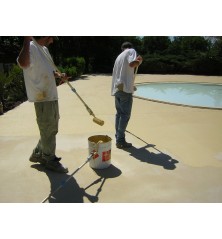 Appliquer régulièrement à la spatule crantée ou au rouleau (en prenant soin de croiser les couches) une couche de mélange résine/durcisseur. Après s’être assuré du bon étalement de la résine, épandez sur cette couche fraiche de résine une couche épaisse de sable.