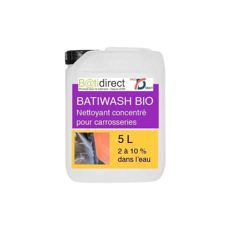 BATIWASH BIO s’emploie en pulvérisation ou en aspersion à l’aide d’un pulvérisateur ou de notre KIT DOSEUR DOSATRON ou encore avec la CENTRALE DE DOSAGE. Après avoir observé un léger temps de pause (5 minutes environ) afin que le produit agisse, rincer au jet d’eau ou à l’aide d’un nettoyeur haute pression à l’eau froide ou chaude pour de meilleurs résultats. Il est également possible d’utiliser BATIWASH BIO dans les portiques de lavage. Dans ce cas le KIT DOSEUR DOSATRON sera particulièrement recommandé en poste fixe.