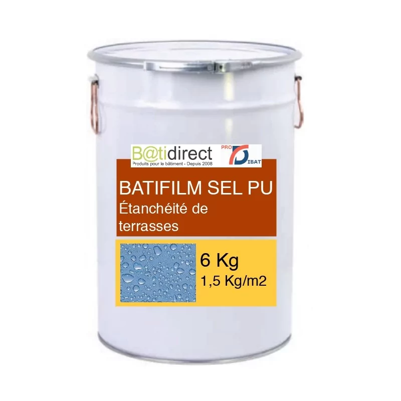 BATIFILM SEL PU est une résine polyuréthane liquide qui crée, après séchage, une membrane étanche, élastique (650 %), perméable à la vapeur d'eau, sans raccord et stable aux UV. Cette résine d'étanchéité assure une protection complète contre les infiltrations d'eau en intérieur comme en extérieur.